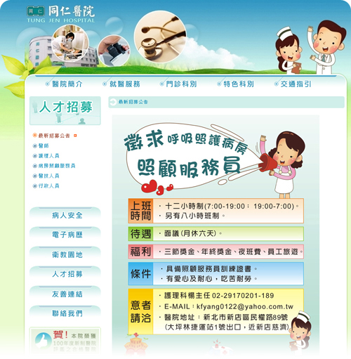 同仁醫院於民國65年創院迄今已逾36年餘。期間、歷經醫療保險政策的大改變、大環境的變遷、高齡社會的醫療需求逐漸顯現、醫護人力的長期供需不平衡、鄰近地區大型財團法人醫院、公立醫院陸續設立等衝擊,我們一一面對;兢兢業業皆為厚植慢性病醫療與長期照護服務之精實能量,期望在本經營團隊唯誠、唯勤、全心、全力服務的積極作為下,可長可久地為新店及鄰近社區的患者提供溫馨的永續服務。